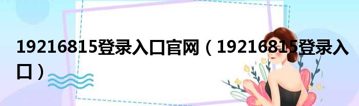 19216815登录入口官网(19216815登录入口)
