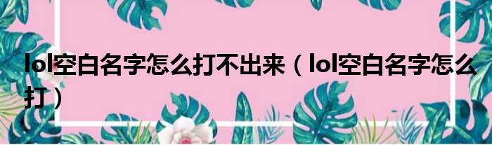 lol空白名字怎么打不出来(lol空白名字怎么打)