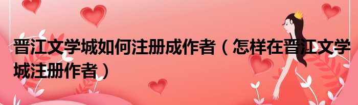 晋江文学城如何注册成作者(怎样在晋江文学城注册作者)