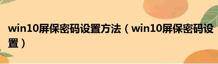 导读 大家好,今天小六子来为大家解答以下的问题,关于win10屏保密码设置方法,win10屏保密码设置这个很多人还不知道,现在让我们一起来看看吧!1
