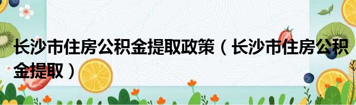 长沙市住房公积金提取政策(长沙市住房公积金提取)