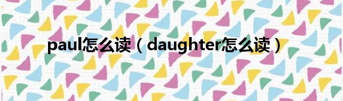 大家好,今天小六子来为大家解答以下的问题,关于paul怎么读,daughter怎么读这个很多人还不知道,现在让我们一起来看看吧!