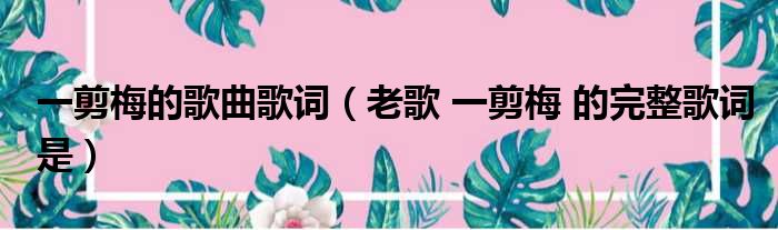 导读 大家好,今天小六子来为大家解答以下的问题,关于一剪梅的歌曲歌词,老歌 一剪梅 的完整歌词是这个很多人还不知道,现在让我们一起来看看