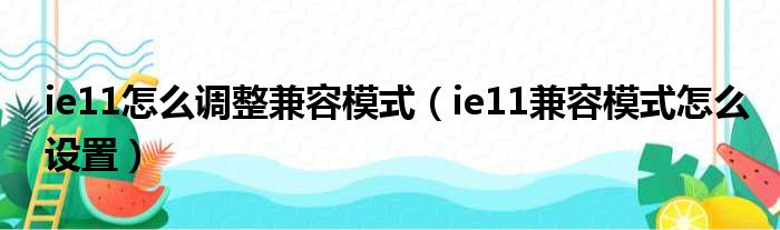 ie11怎么调整兼容模式(ie11兼容模式怎么设置)