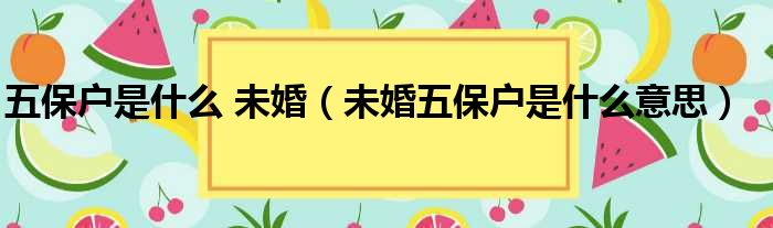 五保户是什么 未婚(未婚五保户是什么意思)