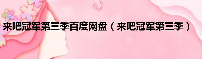 来吧冠军第三季百度网盘(来吧冠军第三季)