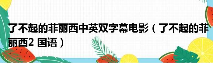 了不起的菲丽西中英双字幕电影(了不起的菲丽西2 国语)