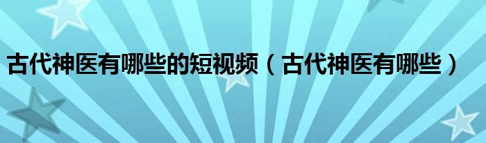 古代神医有哪些的短视频(古代神医有哪些)