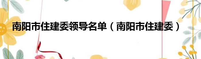 导读 大家好,今天小六子来为大家解答以下的问题,关于南阳市住建委领导名单,南阳市住建委这个很多人还不知道,现在让我们一起来看看吧!1、本数