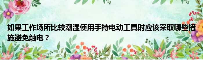 导读 大家好,今天小六子来为大家解答以下的问题,关于如果工作场所比较潮湿使用手持电动工具时应该采取哪些措施避免触电?这个很多人还不知道,