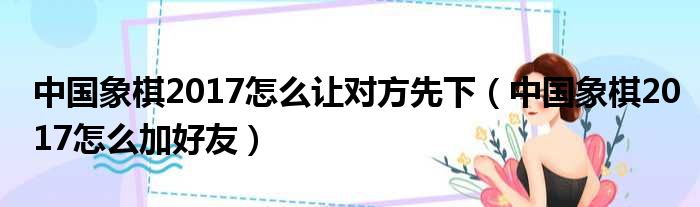 中国象棋2017怎么让对方先下(中国象棋2017怎么加好友)