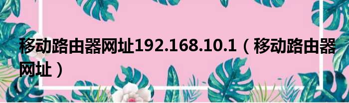 导读 大家好,今天小六子来为大家解答以下的问题,关于移动路由器网址192 168 10 1,移动路由器网址这个很多人还不知道,现在让我们一起来看看吧
