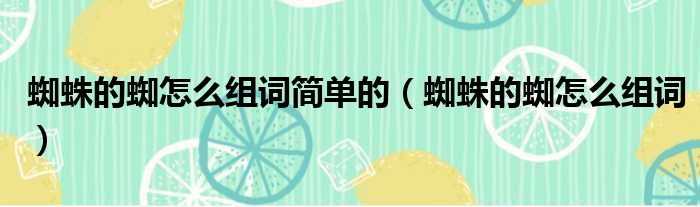 蜘蛛的蜘怎么组词简单的(蜘蛛的蜘怎么组词)