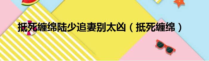 导读 大家好,今天小六子来为大家解答以下的问题,关于抵死缠绵陆少追妻别太凶,抵死缠绵这个很多人还不知道,现在让我们一起来看看吧!1、抵死缠