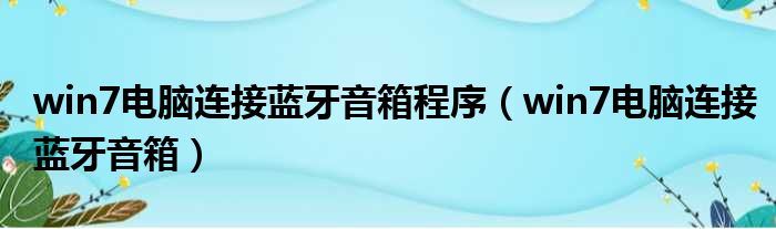 win7电脑连接蓝牙音箱程序(win7电脑连接蓝牙音箱)