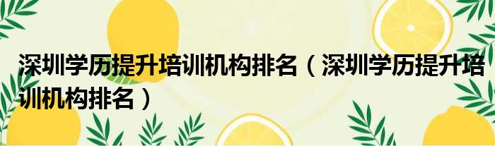 深圳学历提升培训机构排名(深圳学历提升培训机构排名)