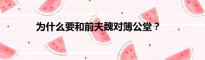 导读 大家好,今天小六子来为大家解答以下的问题,关于为什么要和前夫魏对簿公堂?这个很多人还不知道,现在让我们一起来看看吧!1、从法律角度而