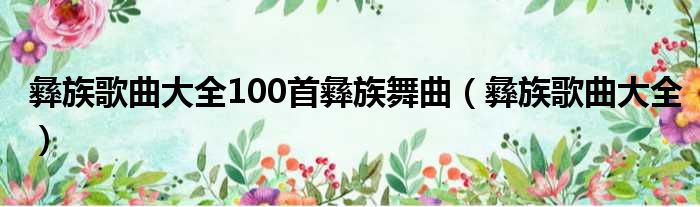 彝族歌曲大全100首彝族舞曲(彝族歌曲大全)