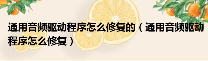 通用音频驱动程序怎么修复的(通用音频驱动程序怎么修复)
