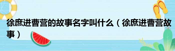徐庶进曹营的故事名字叫什么(徐庶进曹营故事)