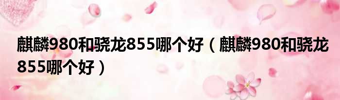 导读 大家好,今天小六子来为大家解答以下的问题,关于麒麟980和骁龙855哪个好,麒麟980和骁龙855哪个好这个很多人还不知道,现在让我们一起来看