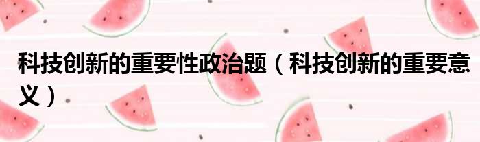 导读 大家好,今天小六子来为大家解答以下的问题,关于科技创新的重要性政治题,科技创新的重要意义这个很多人还不知道,现在让我们一起来看看吧