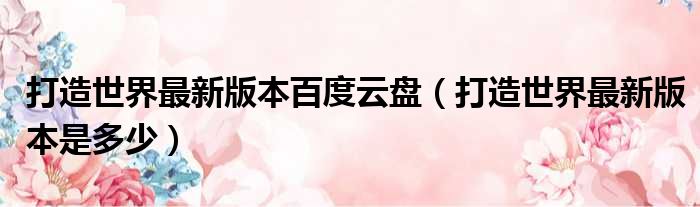 打造世界最新版本百度云盘(打造世界最新版本是多少)