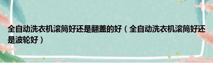 全自动洗衣机滚筒好还是翻盖的好(全自动洗衣机滚筒好还是波轮好)