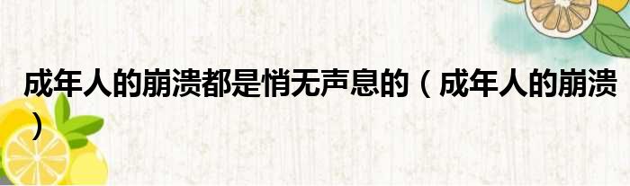 成年人的崩溃都是悄无声息的(成年人的崩溃)