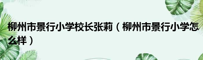 导读 大家好,今天小六子来为大家解答以下的问题,关于柳州市景行小学校长张莉,柳州市景行小学怎么样这个很多人还不知道,现在让我们一起来看看