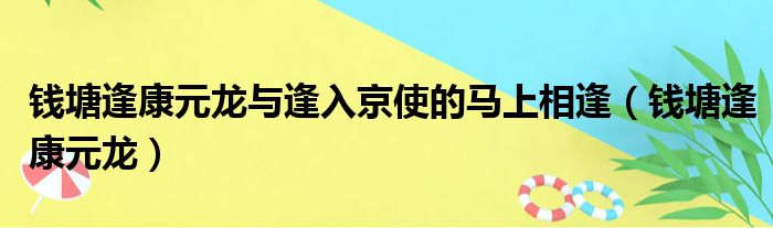 导读 大家好,今天小六子来为大家解答以下的问题,关于钱塘逢康元龙与逢入京使的马上相逢,钱塘逢康元龙这个很多人还不知道,现在让我们一起来看