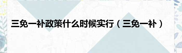 三免一补政策什么时候实行(三免一补)