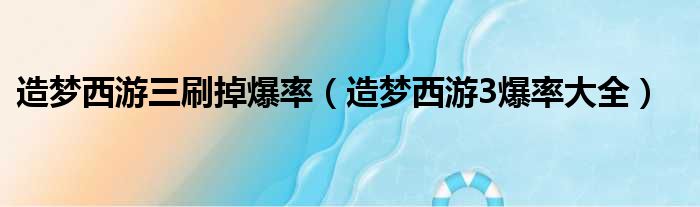 造梦西游三刷掉爆率(造梦西游3爆率大全)