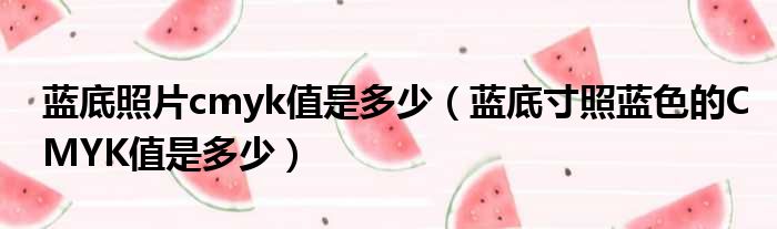 导读 大家好,今天小六子来为大家解答以下的问题,关于蓝底照片cmyk值是多少,蓝底寸照蓝色的CMYK值是多少这个很多人还不知道,现在让我们一起来