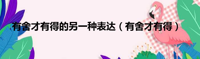 有舍才有得的另一种表达(有舍才有得)