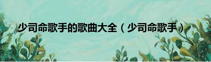 导读 大家好,今天小六子来为大家解答以下的问题,关于少司命歌手的歌曲大全,少司命歌手这个很多人还不知道,现在让我们一起来看看吧!1、少司命