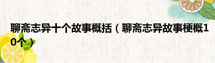 大家好,今天小六子来为大家解答以下的问题,关于聊斋志异十个故事概括,聊斋志异故事梗概10个这个很多人还不知道,现在让我们一起来看看吧!