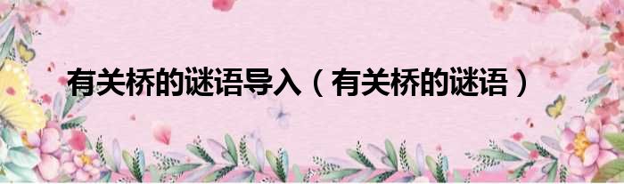 大家好,今天小六子来为大家解答以下的问题,关于有关桥的谜语导入,有关桥的谜语这个很多人还不知道,现在让我们一起来看看吧!