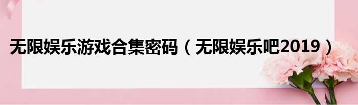 无限娱乐游戏合集密码(无限娱乐吧2019)