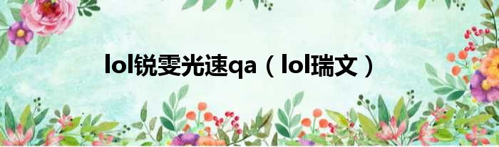 大家好,今天小六子来为大家解答以下的问题,关于lol锐雯光速qa,lol瑞文这个很多人还不知道,现在让我们一起来看看吧!
