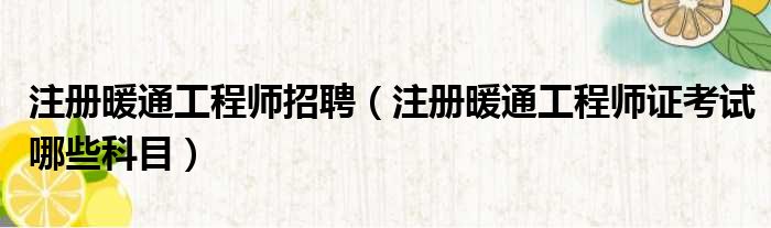 注册暖通工程师招聘(注册暖通工程师证考试哪些科目)