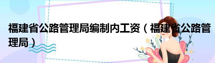 导读 大家好,今天小六子来为大家解答以下的问题,关于福建省公路管理局编制内工资,福建省公路管理局这个很多人还不知道,现在让我们一起来看看