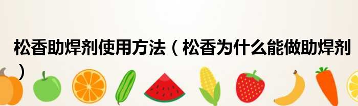 松香助焊剂使用方法(松香为什么能做助焊剂)