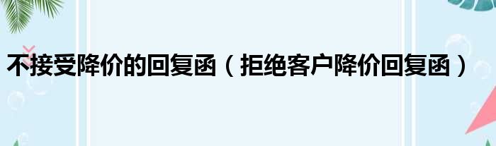 导读 大家好,今天小六子来为大家解答以下的问题,关于不接受降价的回复函,拒绝客户降价回复函这个很多人还不知道,现在让我们一起来看看吧!1、