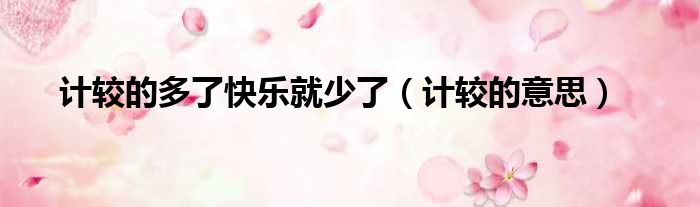 导读 大家好,今天小六子来为大家解答以下的问题,关于计较的多了快乐就少了,计较的意思这个很多人还不知道,现在让我们一起来看看吧!1、斤斤计
