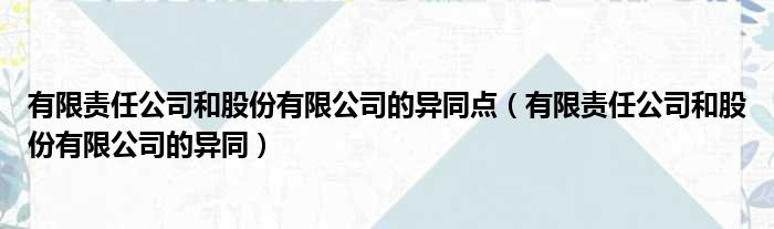 有限责任公司和股份有限公司的异同点(有限责任公司和股份有限公司的异同)