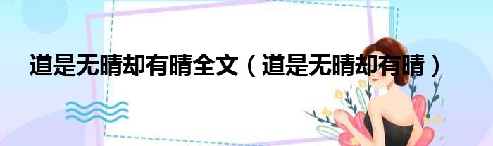导读 大家好,今天小六子来为大家解答以下的问题,关于道是无晴却有晴全文,道是无晴却有晴这个很多人还不知道,现在让我们一起来看看吧!1、"东