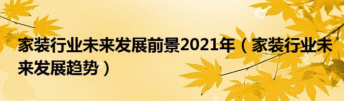 家装行业未来发展前景2021年(家装行业未来发展趋势)