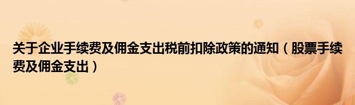 关于企业手续费及佣金支出税前扣除政策的通知(股票手续费及佣金支出)