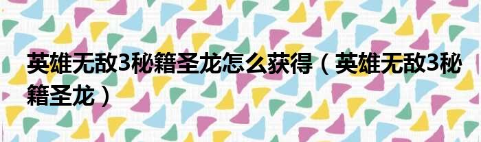 英雄无敌3秘籍圣龙怎么获得(英雄无敌3秘籍圣龙)